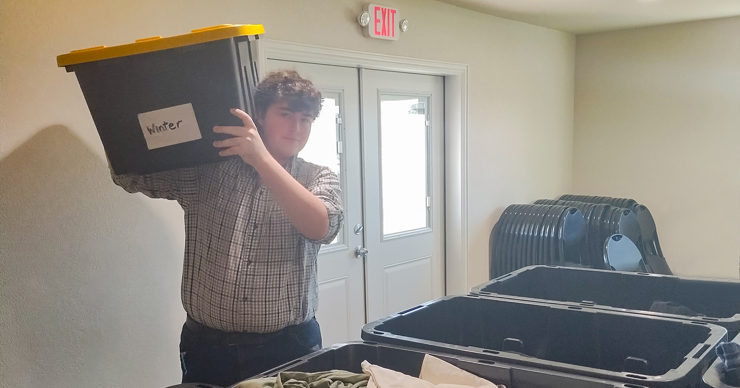 Maria arrived shortly before the storm worsened, concerned about her elderly mother living in a poorly heated trailer. Discovering the clothing was free, she became emotional with relief.